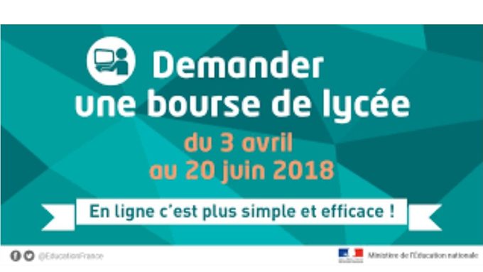 La demande de bourse de lycée en ligne est généralisée à tous les établissements publics de toutes les académies. Pour cela, les parents ou responsables d'élèves doivent se connecter au portail Scolarité-Services du 3 avril au 20 juin 2018.