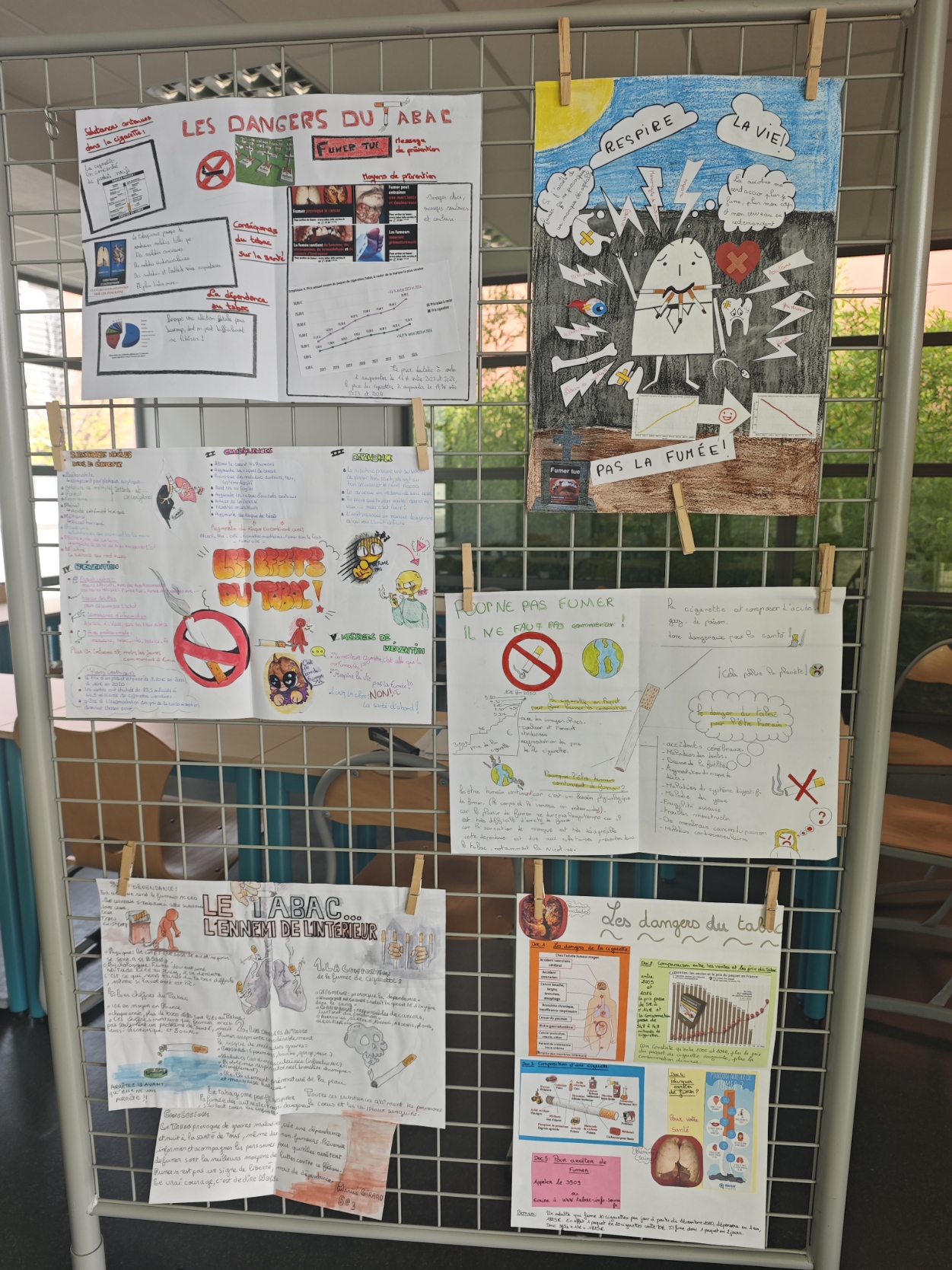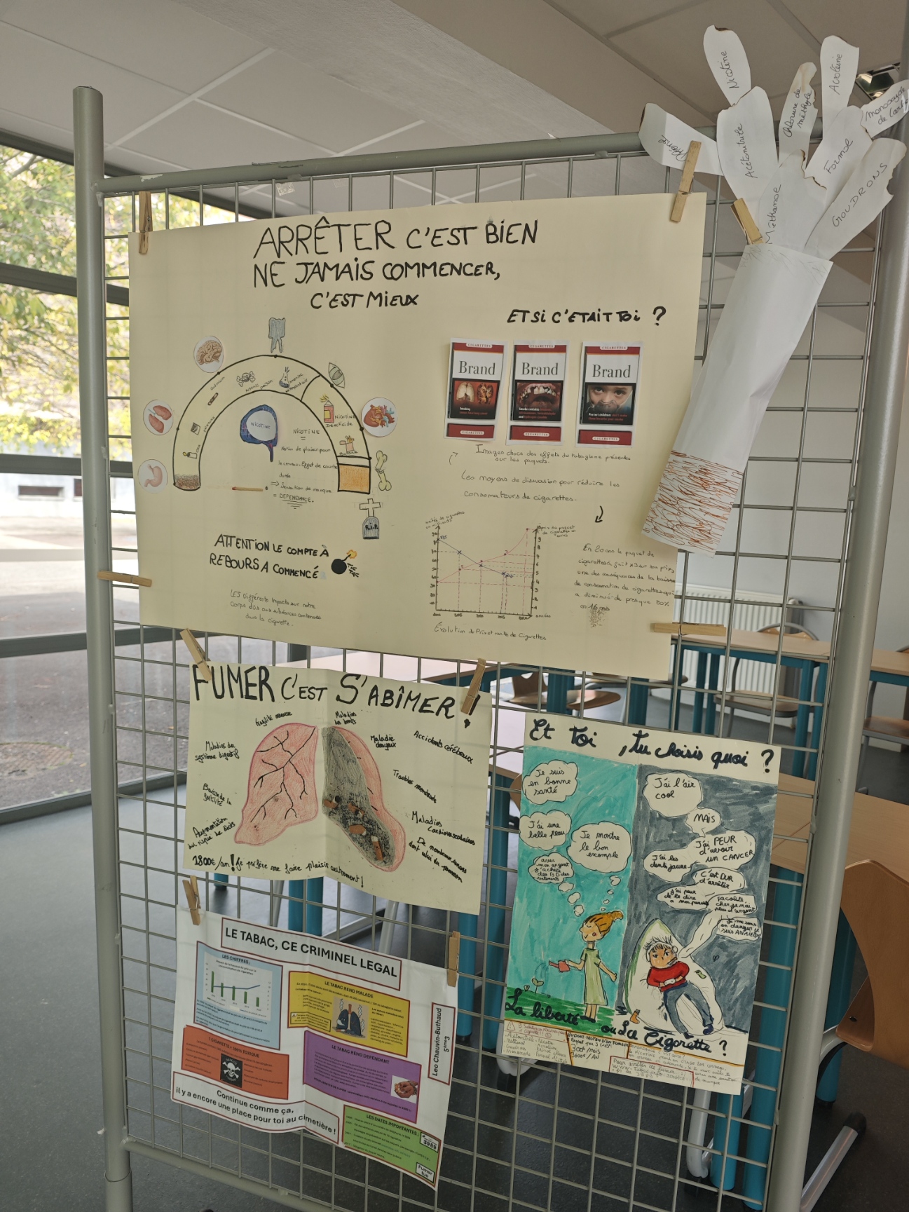 En SVT, les élèves de 5° ont travaillé sur les dangers du tabac sur la santé. voici quelques affiches. Visibles en salle Cuche, la salle vitrée à l'accueil de l'établissement.